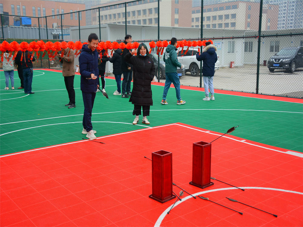 ? 項目部籃球場三排燈籠高掛,200個燈謎卡與吊穗隨風(fēng)飄動,黑色箭羽在古紅色的投壺中“張望”,還有那“蠢蠢欲動”竹圈,似乎也在等待被人拾起的那一刻。在工作人員介紹完規(guī)則之后,大家爭先恐后地涌入活動場地,正式開始了今天的趣味之旅。