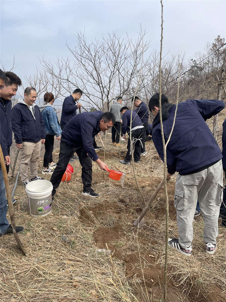 ? 春回大地萬物復(fù)蘇,植樹填綠正當(dāng)時(shí),為深入貫徹落實(shí)習(xí)近平總書記“綠水青山就是金山銀山”的綠色發(fā)展理念,深入開展“我為群眾辦實(shí)事”活動(dòng),增強(qiáng)支部凝聚力,生產(chǎn)科研分公司黨支部、同晟路橋黨支部聯(lián)合組織全體黨員、團(tuán)員、入黨積極分子在歷城區(qū)梯子山村開展“植樹濃春意 助農(nóng)暖人心”主題黨團(tuán)日活動(dòng),幫助農(nóng)戶種植果樹。