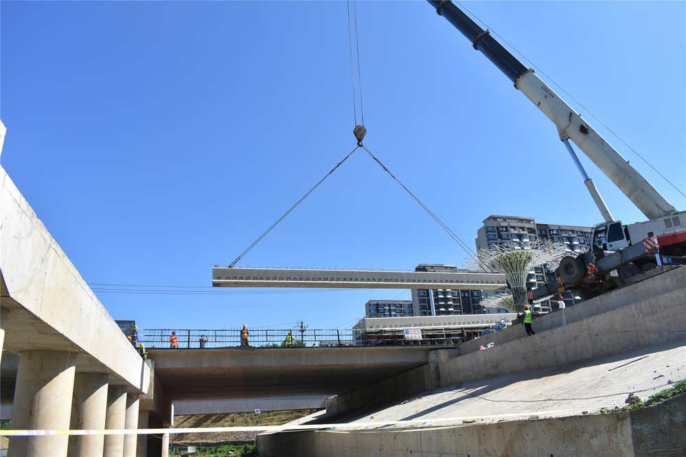 ? 自集團(tuán)公司“大干60天”活動開展以來,四分公司及項(xiàng)目部全員緊盯“搶進(jìn)度、抓質(zhì)量、保安全、促文明、提效益”的目標(biāo),主動擔(dān)當(dāng)作為,積極開展各項(xiàng)施工管理工作。在材料分公司的大力支持與配合下,經(jīng)過緊張有序的部署安排, 6月1日飛躍大道項(xiàng)目順利完成韓倉河橋橋板吊裝,為橋面構(gòu)造的全面施工奠定了基礎(chǔ)。