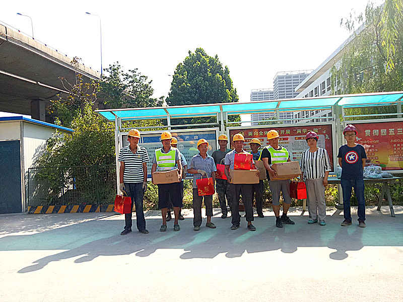 “謝謝項(xiàng)目部的福利,我們很開心?!币晃慌鋵訇?duì)伍負(fù)責(zé)人深深地感慨。工業(yè)北路快速路工程,自開工建設(shè)以來,工期緊,任務(wù)重,為確保工程節(jié)點(diǎn)順利完成,農(nóng)民工們?nèi)找箠^戰(zhàn)在施工一線,他們大多數(shù)來自外地,很少有時(shí)間與家人團(tuán)聚。禮輕情意重,雖然過節(jié)不能回家陪伴家人,但是有了這份溫暖,他們的臉上都洋溢著幸福、滿足的微笑。