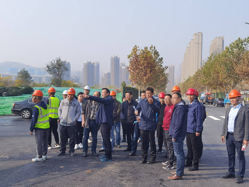 ? 11月14日上午,濟(jì)南市城鄉(xiāng)交通運(yùn)輸局副局長姜春華、總工程師劉鴻順等一行來到五分公司承建的青蓮西路工程現(xiàn)場,察看工程建設(shè)進(jìn)展情況。集團(tuán)公司黨委副書記、總經(jīng)理謝技勛,副總經(jīng)理、總工程師丁建勇及相關(guān)部室、分公司負(fù)責(zé)人陪同。