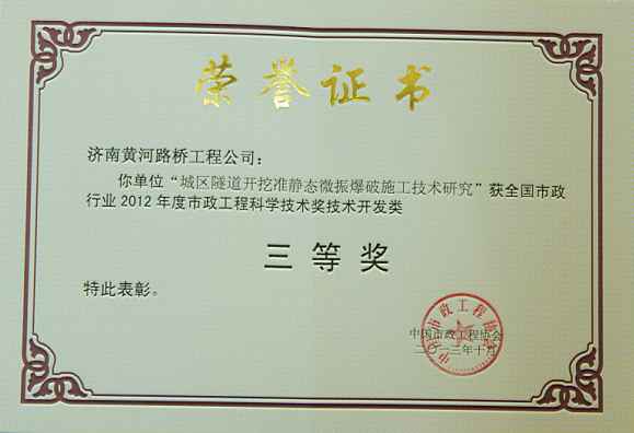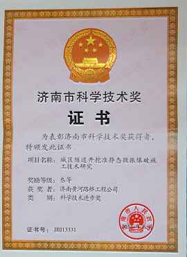 濟(jì)南市科學(xué)技術(shù)獎(jiǎng)(城區(qū)隧道開(kāi)挖
